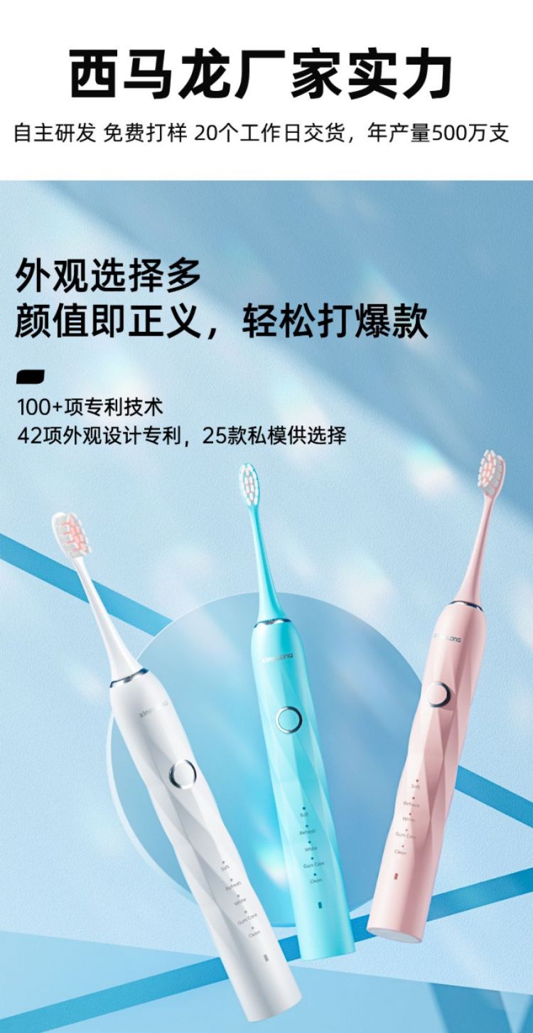 电动牙刷代工厂作为产业链中的重要一环,承担着将设计转化为实际产品的重任。它们不仅要有高效的生产能力和严格的质量控制体系,还要有创新的技术研发能力,以满足市场不断变化的需求。深圳西马龙正是这样一家集设计、研发、生产于一体的电动牙刷代工厂,它的存在和发展,为口腔护理产业的繁荣做出了巨大贡献。