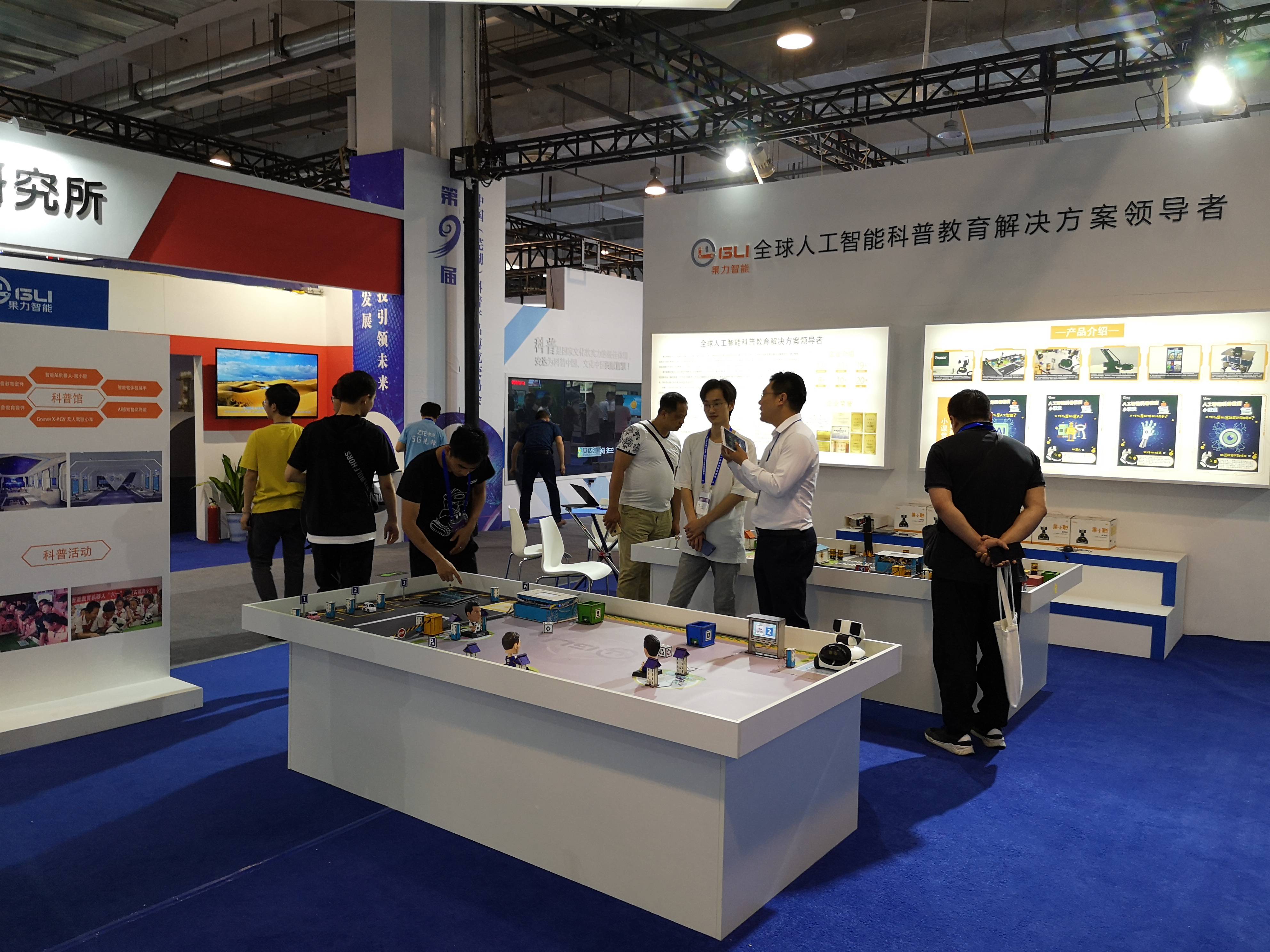 在科博会果力智能展区,一款名叫“果小聪”的人工智能科普教育机器人受到观众热烈关注。展区围满了来自全国各地的专家和客商,大家被“果小聪”丰富的人工智能功能所吸引,纷纷互动体验。受到国内多地市邀请,参加近期即将在全国范围内陆续开展的“科技周”活动。现场工作人员介绍“果小聪”是一款集图形化编程、万能抓取、闲逛模式、实时视频、语音传输、交互游戏、AI课堂等功能于一体的人工智能科普教育机器人。